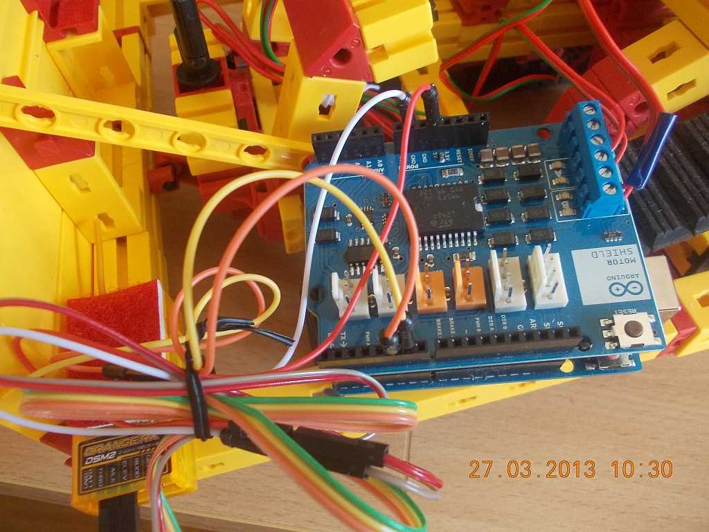 Использовали наборы Fischertechnik XL Bulldozer (и два мотора XM), Arduino, Spektrum 2.4.